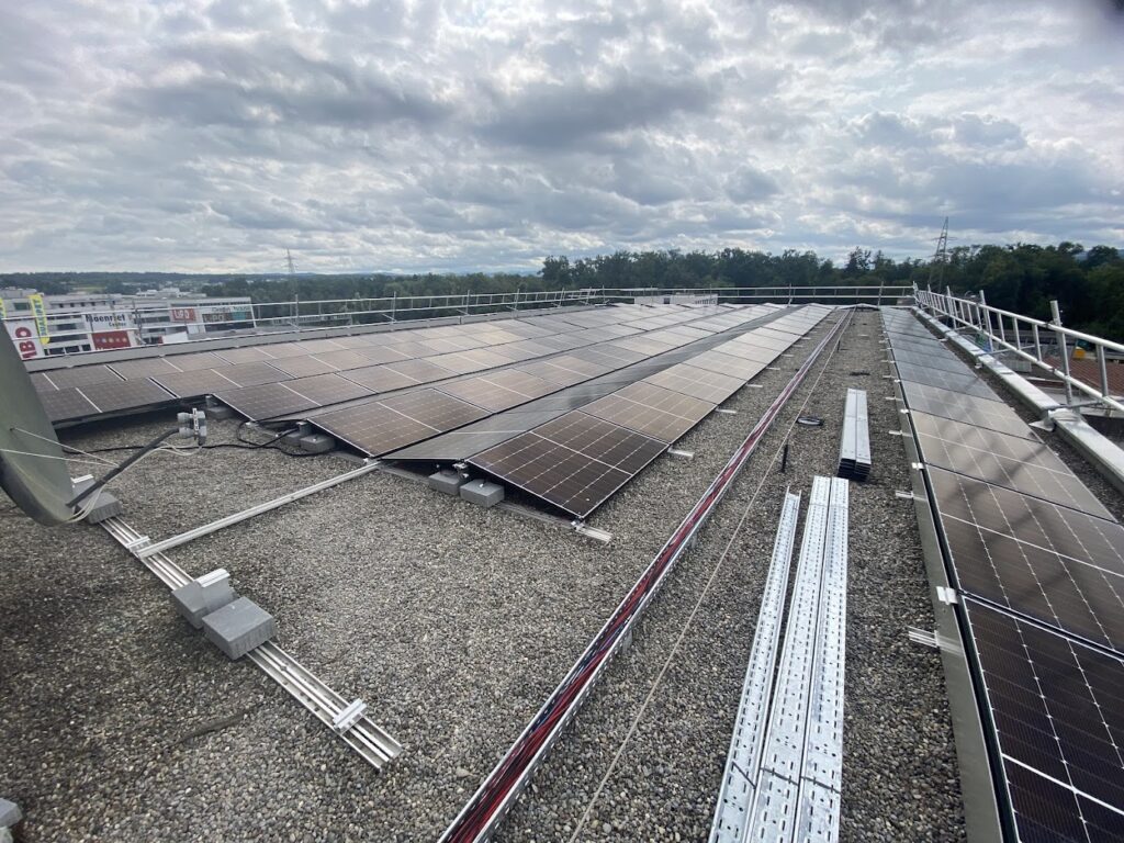 Objekt in Thalwil Panels mit Solarzellen in Fassade und Dach integriert. Robuste und langlebige Unterkonstruktion von M+K.