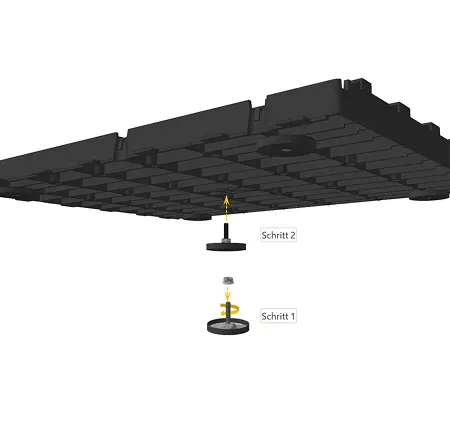 Standardmäßig sind in den Wabenplatten Nivellierfüße mit 40 mm Länge vormontiert.